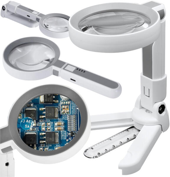 Ha praktikus megoldásra van szüksége a precíz látást igénylő mindennapi tevékenységekhez, ez a 2 az 1-ben nagyító pont Önnek való. Használhatja kényelmes kézi nagyítóként apró szövegek olvasásához, elektronikus munkához, kozmetikai munkákhoz és egyéb precíziós tevékenységekhez. A gyors és intuitív rögzítésnek köszönhetően egy talpra szerelhető, stabil, álló nagyítóvá alakíthatja, így mindkét keze szabaddá válik a szabad munkavégzéshez. Ez egy olyan eszköz, amely hatékonyan növeli a kényelmet, a pontosságot és a praktikumot különféle feladatok során. A nagyító fényes LED-del is fel van szerelve, amelyek egyenletes megvilágítást biztosítanak a munkaterületen. A megvilágításnak köszönhetően a nagyítót minden körülmények között használhatja, még gyenge környezeti fényben is. A három fényerőszint lehetővé teszi a megvilágítás tökéletes beállítását az igényeihez. A dőlésszög beállításának lehetősége lehetővé teszi, hogy a fényt pontosan oda irányítsa, ahová szüksége van rá. A fő lencse 3,5-szörös nagyítást kínál, a beépített spotlencse pedig lenyűgöző 10,25-szörös nagyítást, így még a legapróbb részleteket is láthatja. MŰSZAKI ADATOK: Állítható kar Nagyítás: 3,5x, 10,25x LED-ek 3 világítási mód Tápellátás: újratölthető Töltés USB-kábelen keresztül LED akkumulátor töltöttségjelző KI/BE kapcsoló Vonalzó Szín: fehér A termék CE tanúsítvánnyal rendelkezik