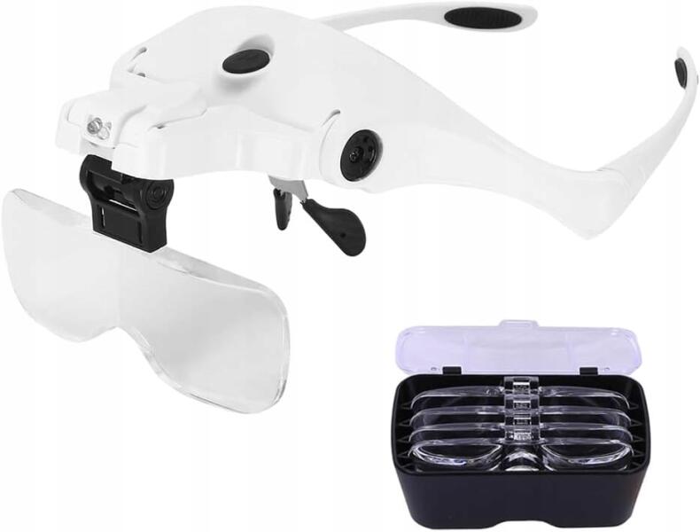 Amazon Fejpántos Nagyító Szemüveg Leddel, Cserélhető Lencse 1/1, 5/2/2, 5/3, 5x Fehér (358301664)