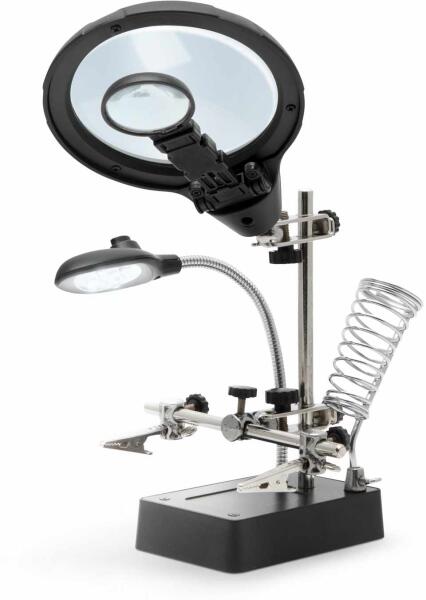 Rendkívül jól használható forrasztás-technikában, elektronikában, modellezéshez, illetve otthoni barkácsoláshoz. Segítségével az apróbb tárgyak, panelek könnyedén rögzíthetőek ezáltal szabadon hagyva mindkét kezünket. A tartókarok minden pontja 360°-ban mozdítható és rögzíthető. A talp masszív alapot, az erős krokodilcsipeszek pedig stabil tartást biztosítanak a munkadarabnak, melyen a többszörös nagyítású torzításmentes üveglencsés nagyító segítségével a legaprólékosabb műveletek is elvégezhetőek.