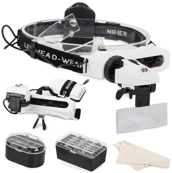 A professzionális nagyító különböző lencsékkel ideális eszköz mindennapi használatra. Használhatják ékszerészek, numizmatikusok, elektronikai javítók, órások stb. Ideális ékszerek, bélyegek, érmék megtekintéséhez, elektronika, órák javításához, drágakövek megtekintéséhez vagy mindennapi használatra. A nagy nagyítóüvegnek és a beépített 2 x LED-nek köszönhetően a kép nagyon tiszta és könnyen olvasható. A LED-ek szöge az Ön igényeinek megfelelően állítható. Az egész mechanizmus alapja egy kényelmes gumi fejpánt. A homlokkal való érintkezési ponton a nagyító nagyon puha anyaggal van párnázva, amely kíméletes a bőrhöz. A nagyító három fő lencsével rendelkezik, amelyek erőssége: 5x, 8x, 20x és öt kiegészítő nagyító lencsével, aminek nagyítása: 1x, 1,5x, 2,0x, 2,5x, 3,5x, a könnyű tárolás érdekében speciális dobozba csomagolva. A kettős lencsetartónak köszönhetően különböző lencsekombinációkat lehet használni a megfelelő nagyítás kiválasztásához. MŰSZAKI ADATOK: Kiváló minőségű anyagokból készült Ideális mindennapi használatra Nagyon kényelmes használat Ideális ajándék Lencse nagyítás: 1x; 1.5x; 2x; 2.5x; 3.5x; 5x; 8x; 20x 8 cserélhető nagyító lencsével rendelkezik Különböző kombinációk lehetősége A lencsék felcsíptethetők Nagyon tiszta és olvasható kép Beépített, nagy teljesítményű 2 x LED, állítható dőlésszöggel. Könnyű elemcsere Tápegység: 3 x AAA elem (nem tartozék) Puha tisztító kendő Szín: fekete és fehér Méret: univerzális