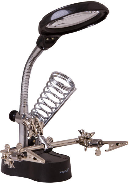 A Levenhuk Zeno Desk D3 egy bifokális lencsét, beépített világítást, rugalmas nyakrészt és egy harmadik kézként szolgáló eszközt is tartalmaz. Ezt a modellt biztosan szeretni fogják a 3D modellezők, az ékszerkészítők, és azok, akik nyomtatott áramköröket javítanak vagy precíziós elektronikai eszközökkel foglalkoznak. A lencse optikai üvegből készült, a nagyítása 3,5x és 12x; a kényelmesen állítható, rugalmas nyak segítségével pedig tetszőlegesen beállíthatod a pozícióját. A beépített világítás két LED-ből áll, amelyek a lencse mellé vannak felszerelve. Az összes szorító eltávolítható. Márka Levenhuk, Inc. , USASzavatosság élettartamEAN 5905555005713A csomag méretei (HxSzxM): 13x12x8 cmSzállítási súly 0.36 kgLencse típusa bifokálisOptikai elemek anyaga optikai polimerüvegLencseátmérő (méretek), mm 65Kiegészítő lencse átmérője, x 17Átmérő tartomány 50 mm—90 mmNagyítás foka, x 3.5 — 12Nagyítás foka, x 3.5Kiegészítő lencse nagyítása, x 12Váz fém, műanyagFogantyú anyaga fémVilágítással yesMegvilágítás LEDTápellátás 3 db AAA elem (a készlet nem tartalmazza)Használat olvasás/megtekintés, varrás/textil, órajavítás/ékszerészKialakítás asztalra/háromlábú állványra helyezhetőKiegészítő 2 LED, rugalmas háromlábú állvány, „segédkezes tartók