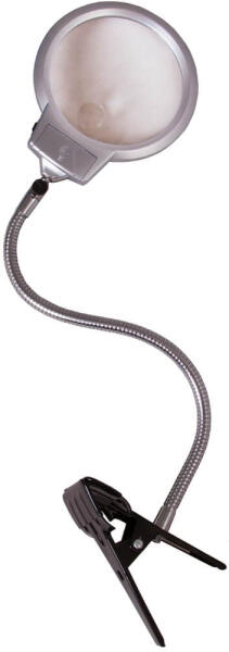 A lencse nagyítása 2x és 5x. A két fénykibocsátó dióda a lencse alapjába van beépítve, és egyenletes megvilágítást biztosít a munkaterületen. A rugalmas nyak segítségével a lencse a legkényelmesebb helyzetbe állítható. A szorító segítségével a nagyító a legtöbb munkafelületre felszerelhető: asztalra, polcra vagy szekrényajtóra.