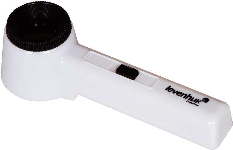 A Levenhuk Zeno Handy ZH43 nagyító fényforrással van ellátva: segít a rossz fényviszonyok közötti munkavégzésben. A lámpa kapcsolója a nyélen található, a helyzete pedig ujjal könnyen módosítható. Ez a nagyító tökéletes apró tárgyak tanulmányozásához vagy kisbetűk kiolvasásához.