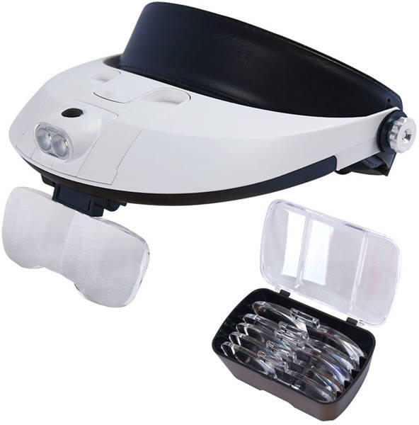 Nagyító, Fejre Rögzíthető, Háttérvilágítással 5 Cserélhető Lencsével