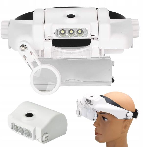 MŰSZAKI ADATOK: Kiváló minőség Ideális mindennapi használatra Nagyon kényelmes használni Ideális ajándéknak Méret: univerzális Teljesen állítható pánttal, számlappal Objektív nagyítás: 1,5x 2x, 8x 3 nagyító Nagyon tiszta és jól olvasható kép Állítható dőlésszög Beépített nagy teljesítményű 3 x LED állítható dőlésszöggel Tápellátás: 3 x AA elem (nem tartozék) Szín: fekete-fehér Mérete: 30cm x 21cm A termék CE minősítéssel rendelkezik